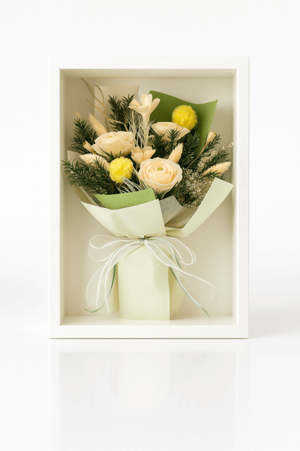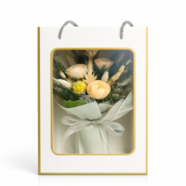 Material: Preserved natural flowers within a high-quality wrapping paper in a display box
