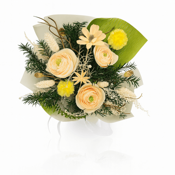 Preserved flowers can last over a year with proper care. Our Citrus Elan Ranunculus Petite Bouquet is designed to maintain their beauty for years to come.